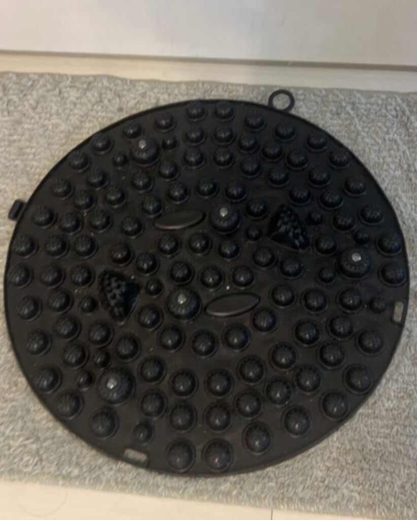 私が使っている足つぼマットは円形デザインで、どの方向からでも踏めるのが便利。
