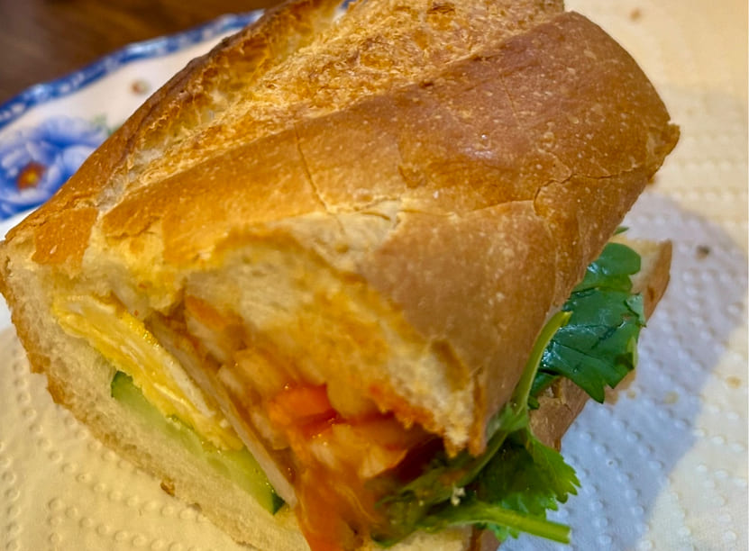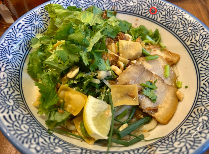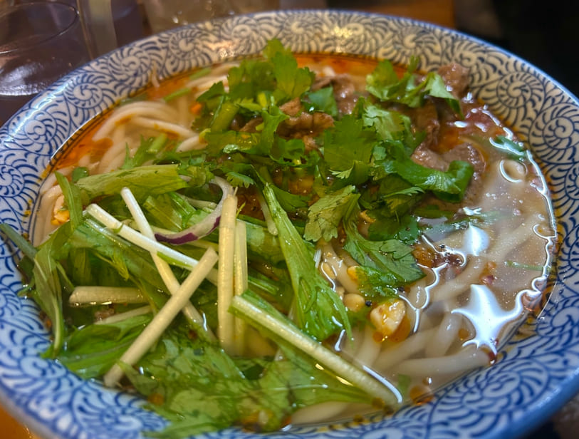 甘酸っぱいなますにパクチー、きゅうり、ふわふわオムレツに焼豚