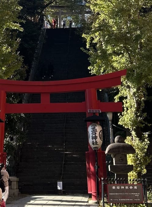 男坂と呼ばれる急勾配の石段は、86段・一段25cmの高さ。