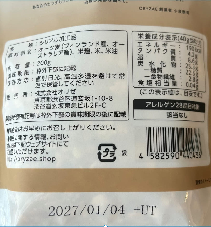 「ORYZAE」の「KOJI GRANOLA」です。