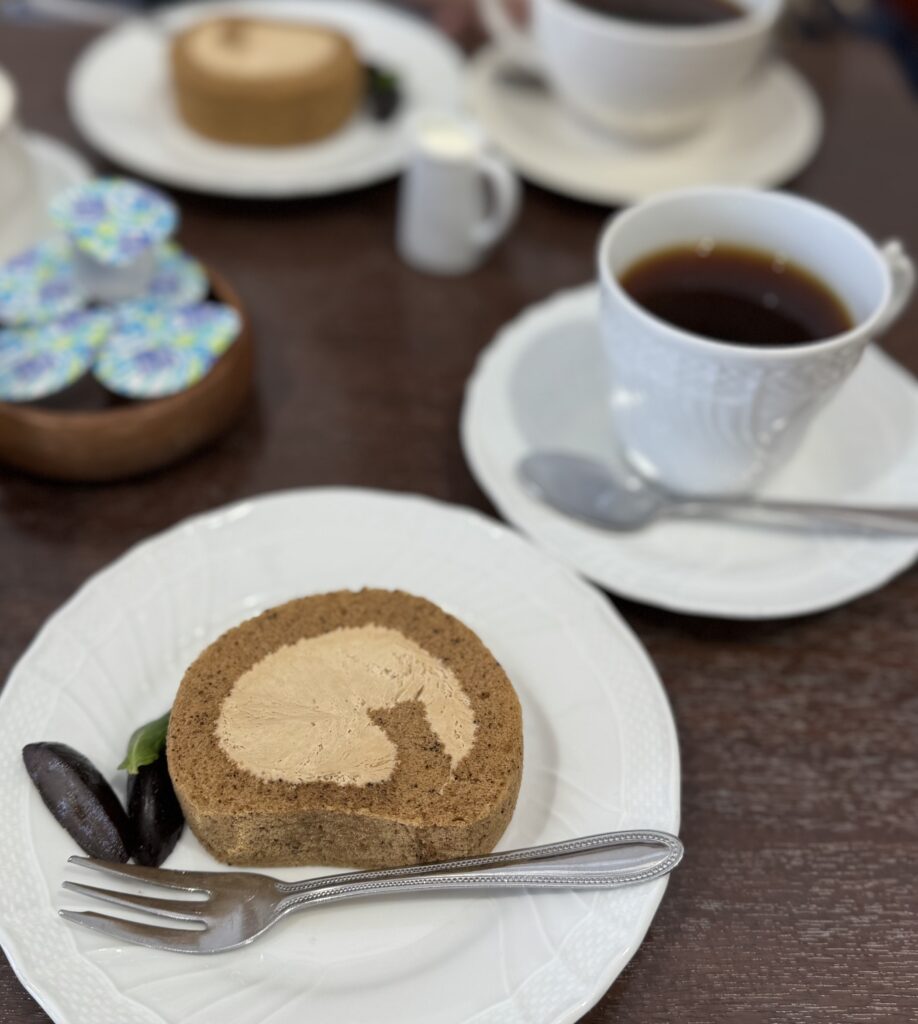 ロールケーキとコーヒーの組み合わせは、やっぱり間違いないおいしさ。