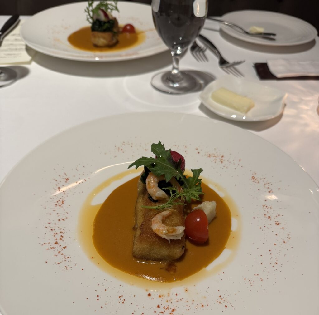 淡白な舌平目に甲殻類を煮詰めて作った濃厚なソースが最高いおいしい。