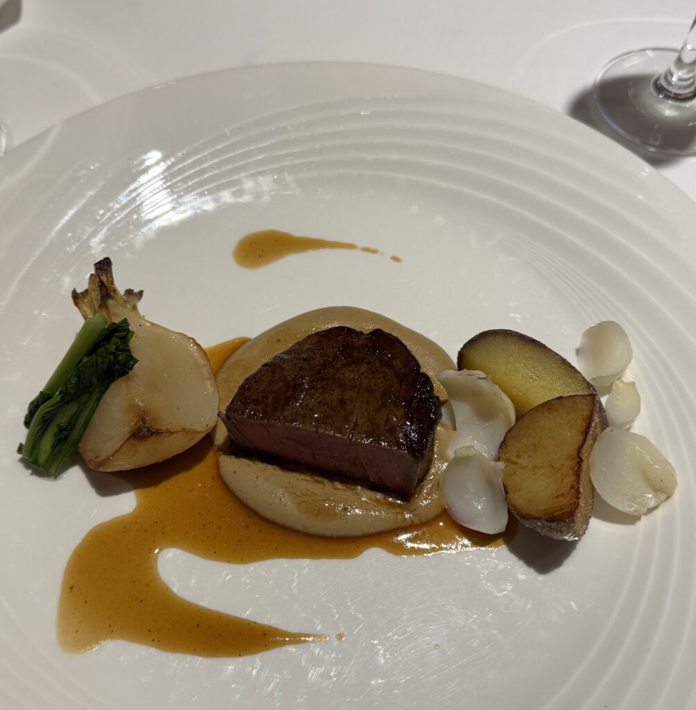 柔らかいお肉にトリュフソースとポルチーニ茸のピューレ。